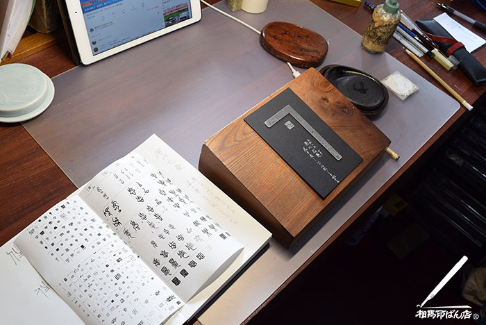 2021.07.22 1cm枠に4文字入れる(楽以忘憂) 本日から4連休となっております。1日目は、楽篆に出品する作品づくり。 印文:楽以忘憂意味:道を楽しめば心配ごとも忘れる 辞書2冊から4文字の部分をまとめノートに貼り、どの字形の組み合わせにするか草稿を書きながら模索し、骨格が決まれば草稿をもとに印稿を書きあげます。 今回は、10mm角に4文字入れて、細字で刻していきます。ちょっと厄介ですが、厄介なことを楽しんでみたいと思います。 ブログランキングに挑戦中です。ポチッポチッと、応援よろしくお願いします(。-人-。)