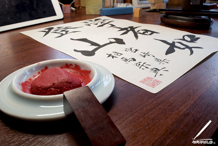 最後は、福原先生から頂いた印材を環山先生に刻して貰った落款印を押して締めました。