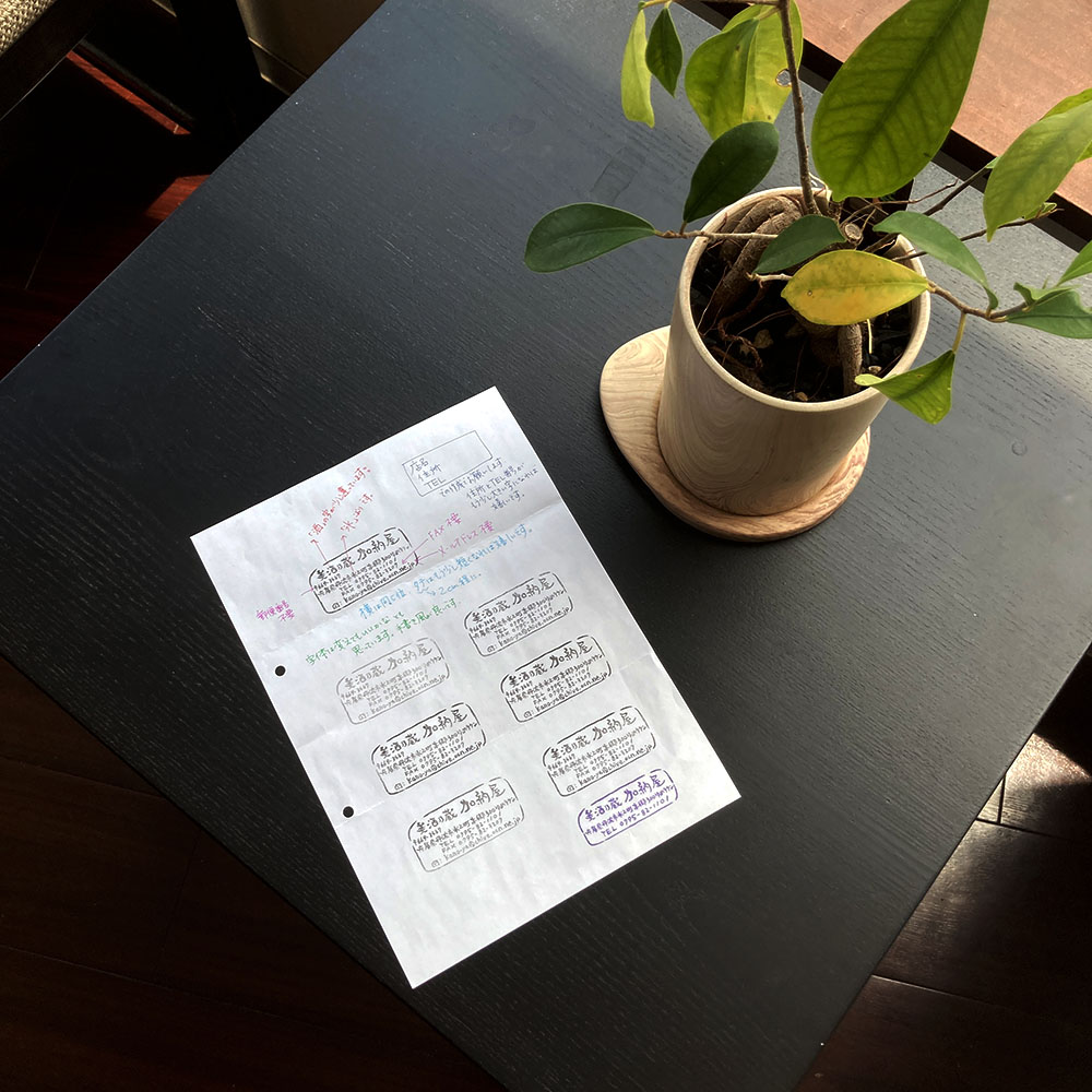 横幅はあまり変えず、高さを2cm以内に抑えた状態で、住所と電話番号を大きくして欲しいとの御要望でした。
